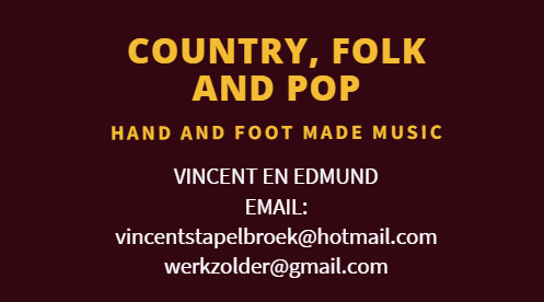 Wij houden van de good old countrymusic; denk dan aan namen als Johnny Cash ( "San Quentin "), Don Williams ( "Some broken Hearts " ) maar ook iemand als Dwight Yoakam horen en spelen we graag. Ook nummers van de Beatles in een countryjasje past ons!